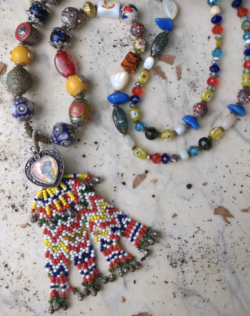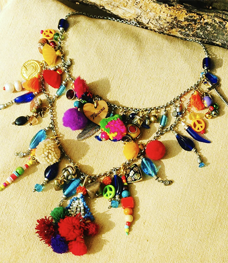 Materiali: I principali materiali utilizzati sono : metallo argentato o dorato, ceramiche, murrine, tessuto, legno, vetro scavo, fluorite, pietre naturali, cristalli. Tutti i materiali sono privi di nickel. Generalmente le pietre naturali sono in madre perla, perle di fiume, pasta di corallo, pasta di turchese, ametista, lapis, quarzi in generale.